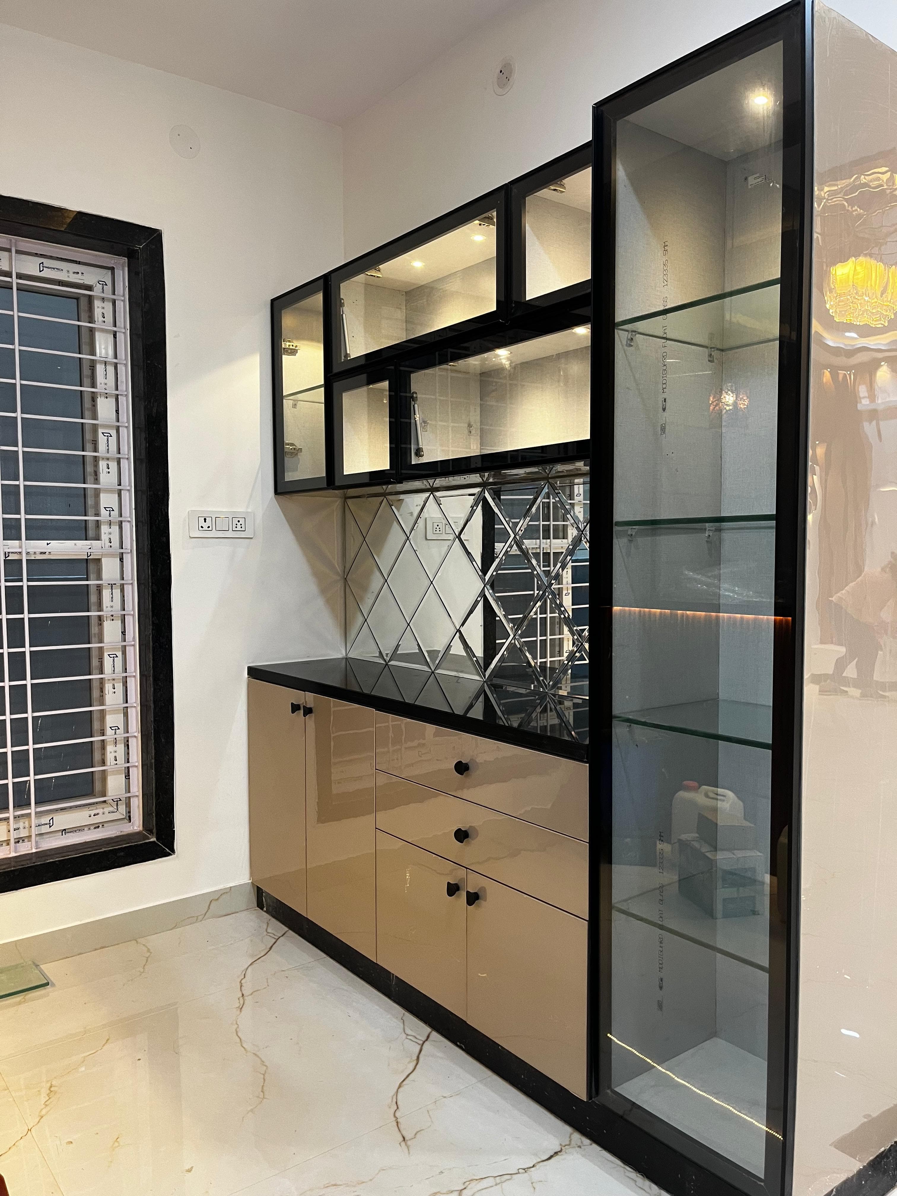 Embrace the latest trendy crockery bar unit designs. Crafted with care, our interior crockery units combine exquisite finishes, creating a luxurious and functional space. Interior crockery units with bar counters are not just for storage, they are a focal point of your dining room.